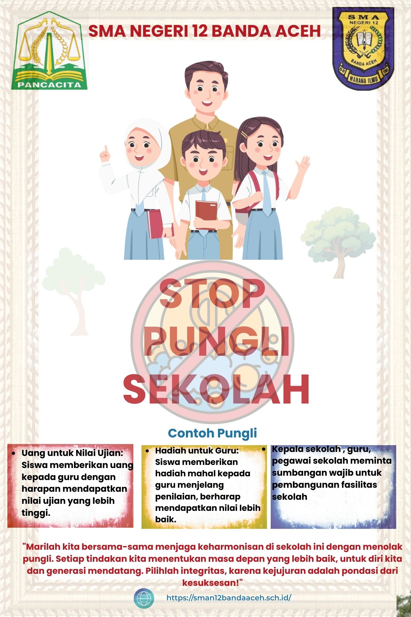 Banda Aceh, 28 September – Dalam upaya menciptakan lingkungan belajar yang bersih dan berintegritas, Kepala Sekolah SMAN 12 Banda Aceh, Ibu Nurjannah, S.Pd., M.Pd., mengajak seluruh siswa dan staf untuk bersama-sama menolak praktik pungli di sekolah.