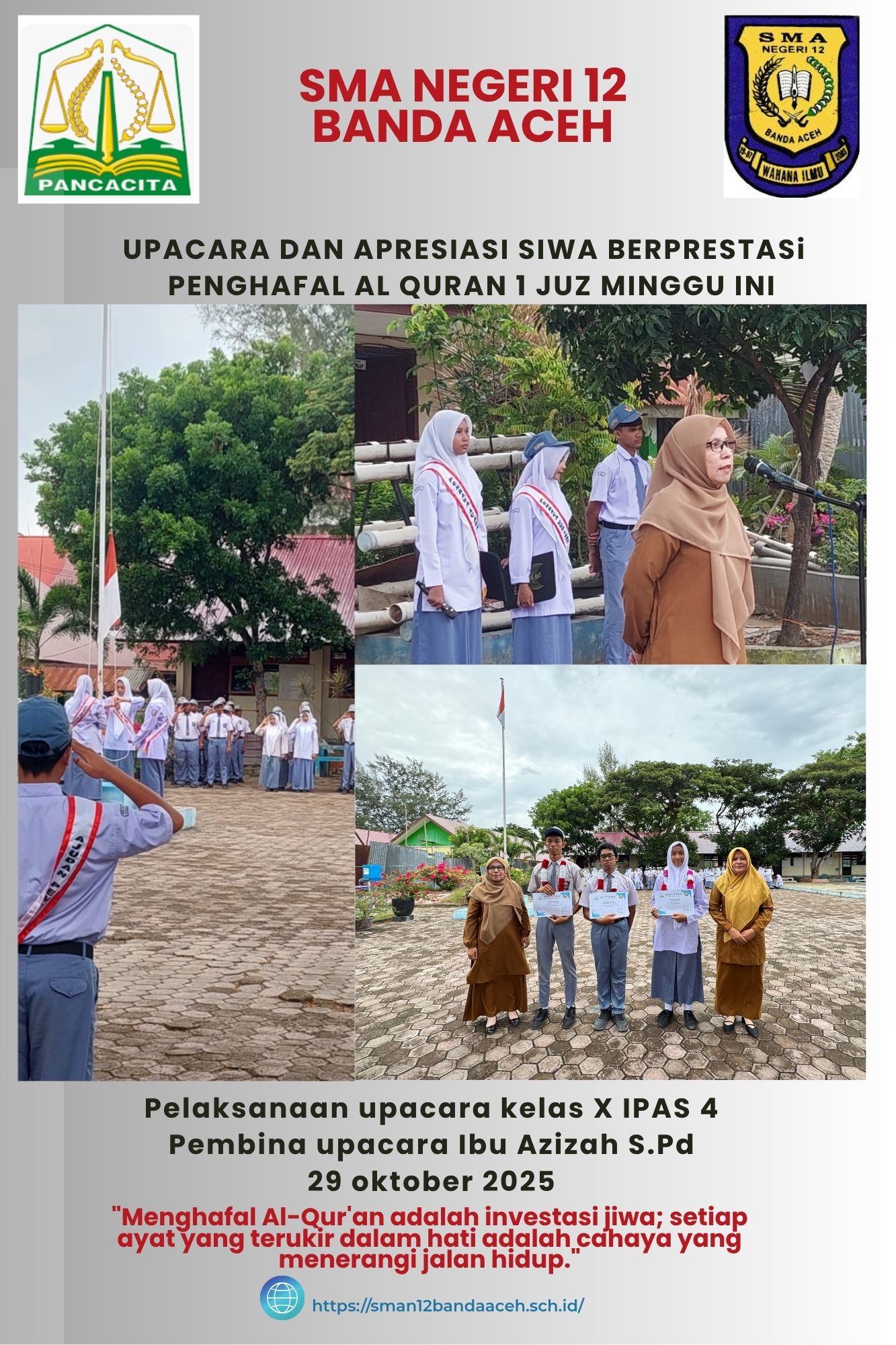 Dengan semangat kedisiplinan dan penghargaan atas prestasi, diharapkan siswa SMAN 12 Banda Aceh dapat terus meningkatkan kemampuan diri dan berkontribusi positif bagi masyarakat.