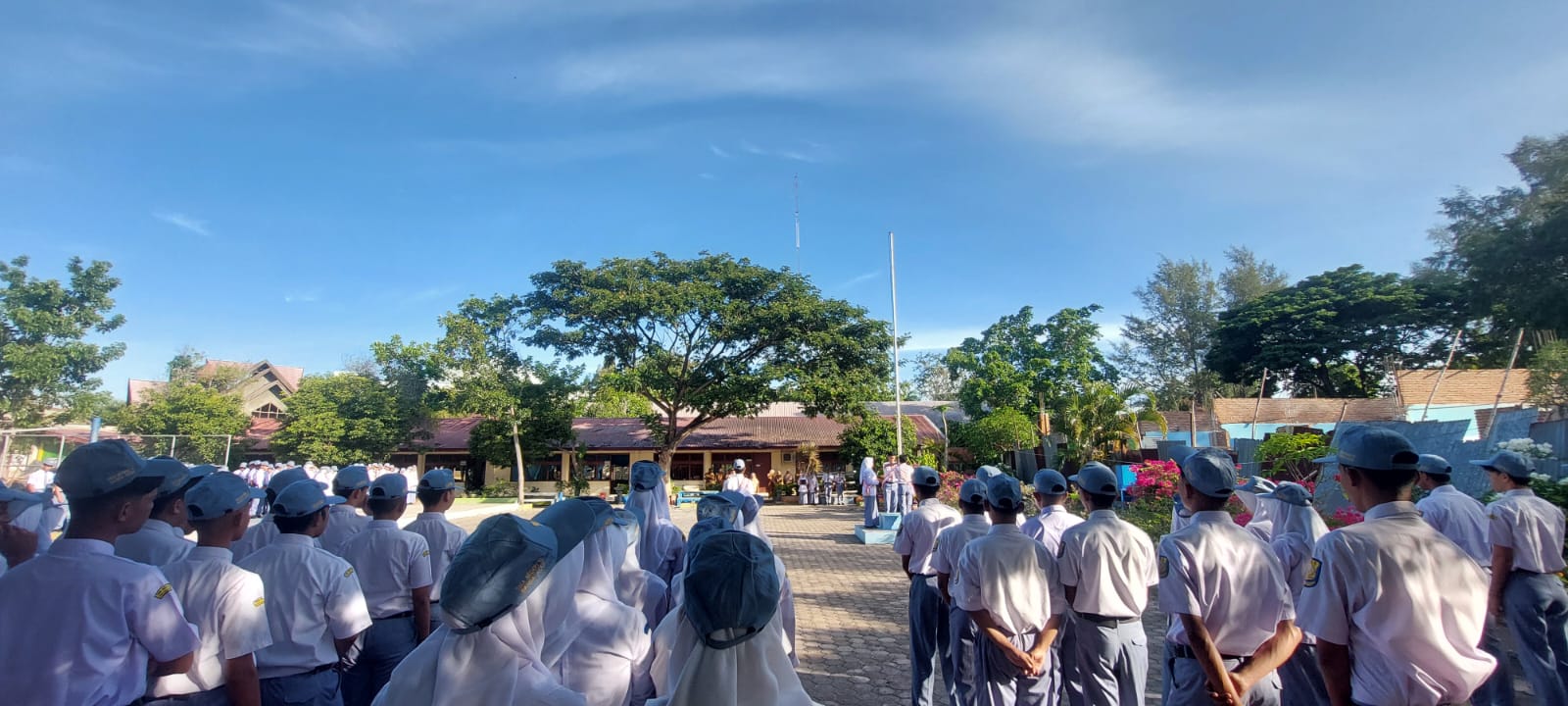 Pelaksanaan upacara kali ini dipercayakan kepada kelas XII IA 1 sebagai petugas, yang menjalankan tugasnya dengan sigap dan penuh tanggung jawab. Deretan siswa berseragam putih-biru berdiri tegap membentuk barisan yang rapi, sementara siswi-siswi berhijab tampak anggun, menciptakan pemandangan yang harmonis dan penuh ketertiban. Semilir angin pagi dan cahaya matahari yang hangat menambah kesyahduan momen tersebut.